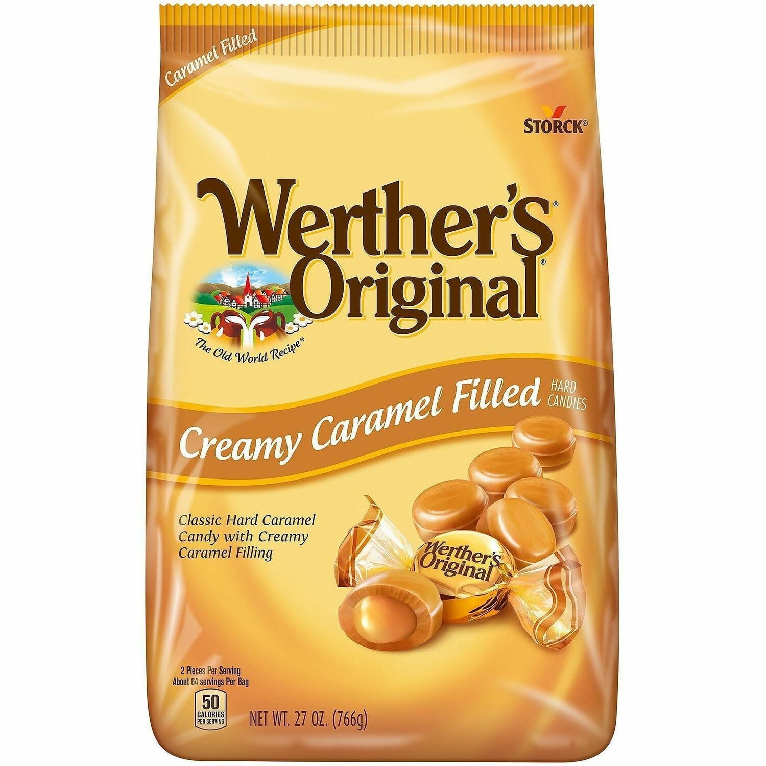 Creamy Carmel Filled Hard Candies feature a hard candy shell with a smooth, melt-in-your-mouth, creamy filling in the center. Hard candies are made with the finest ingredients blended together with the same passion and care as the first Werther's Original candy maker brought to every candy that he crafted. Candies are made with real butter and fresh cream for a one-of-a-kind taste.
